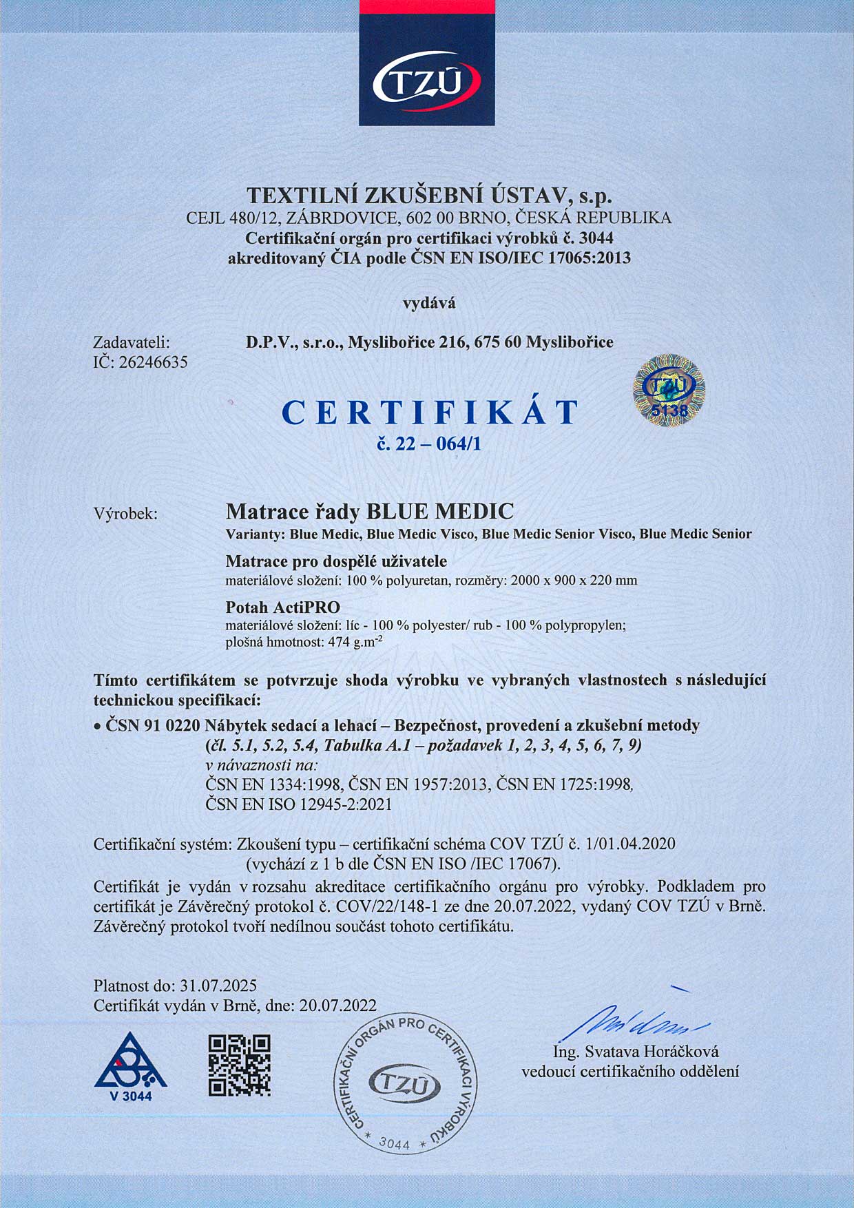 Šance na přežití roztočů se tak velmi snižuje, až zcela eliminuje a riziko alergií se výrazně zmenšuje. Také bylo prokázáno, že Actipro kromě pozitivních výsledků v souvislosti s roztoči, bojuje současně proti nežádoucím bakteriím a houbám. Tím se díky ActiPRO potahu můžeme vyvarovat i zápachu. Pokud chceme spát klidně a bez alergií, pak nejlépe na DPV matraci s ActiPRO potahem.